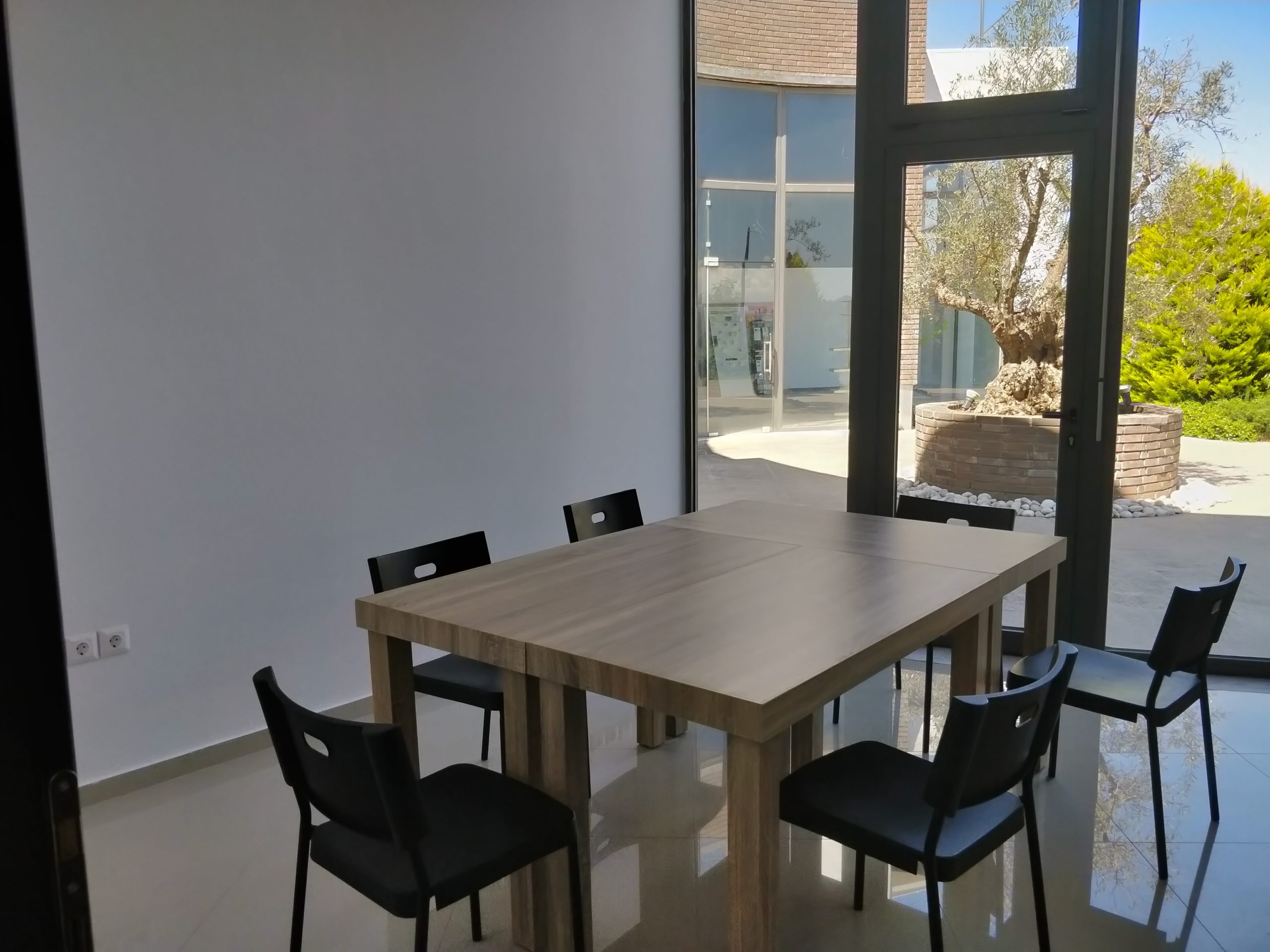 - Ευχάριστο περιβάλλον με φυσικό φως, μεγάλα παράθυρα και φυτά.