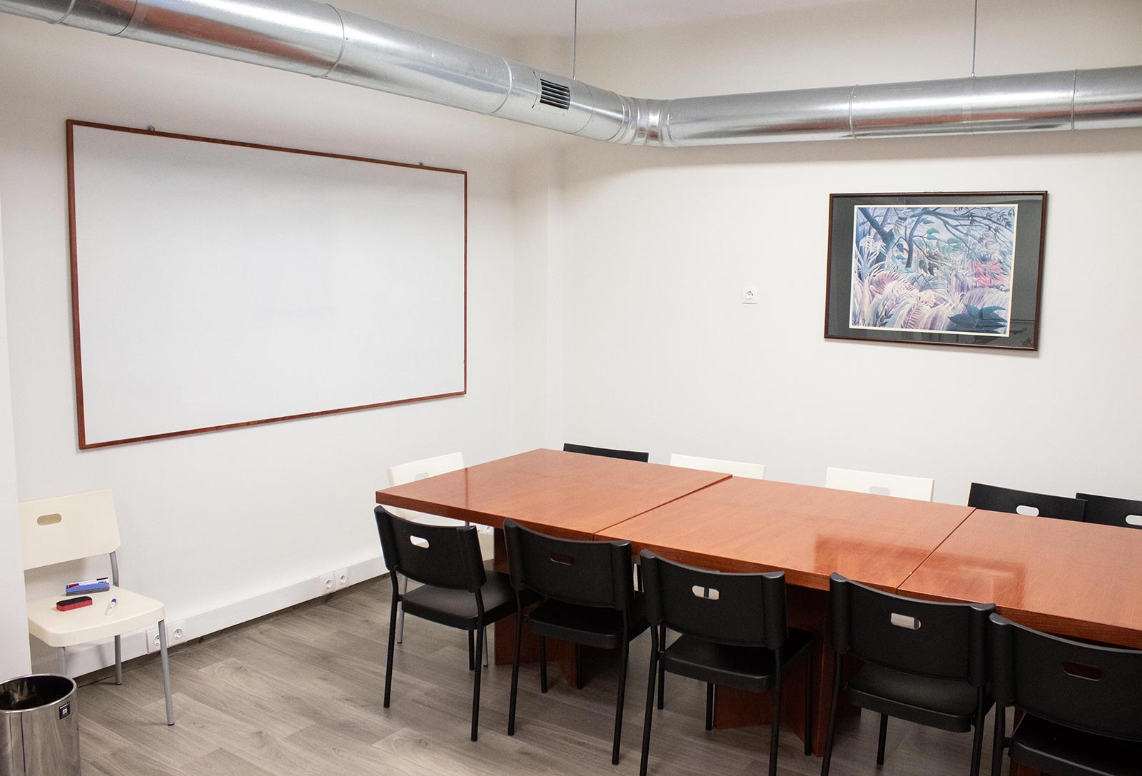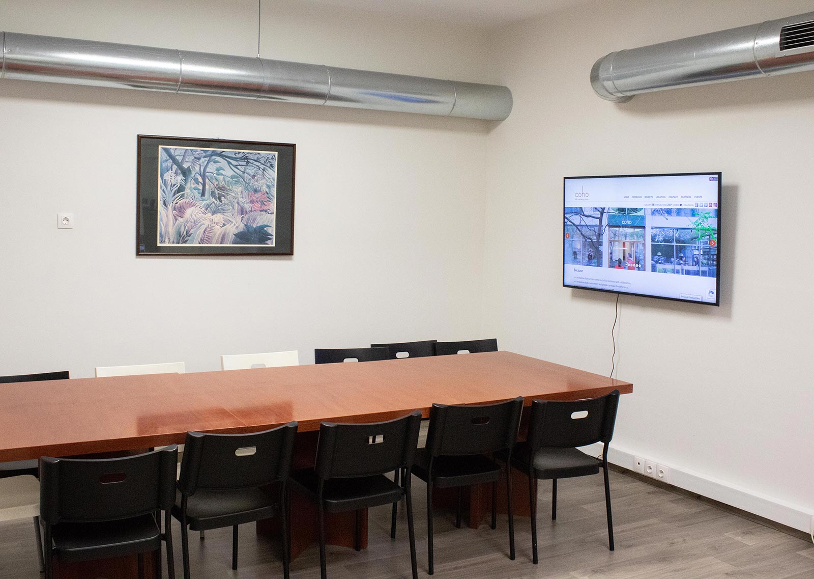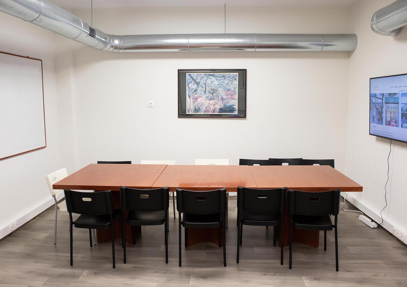 A room with airy and professional atmosphere, high-speed wifi and Ethernet connection, a 55″ TV monitor and a large table for up to 8 people. The separate entrance allows for privacy and the adjacent kitchen offers ideal conditions for setting up catering without interrupting the meeting.